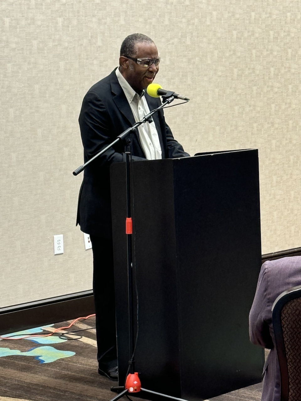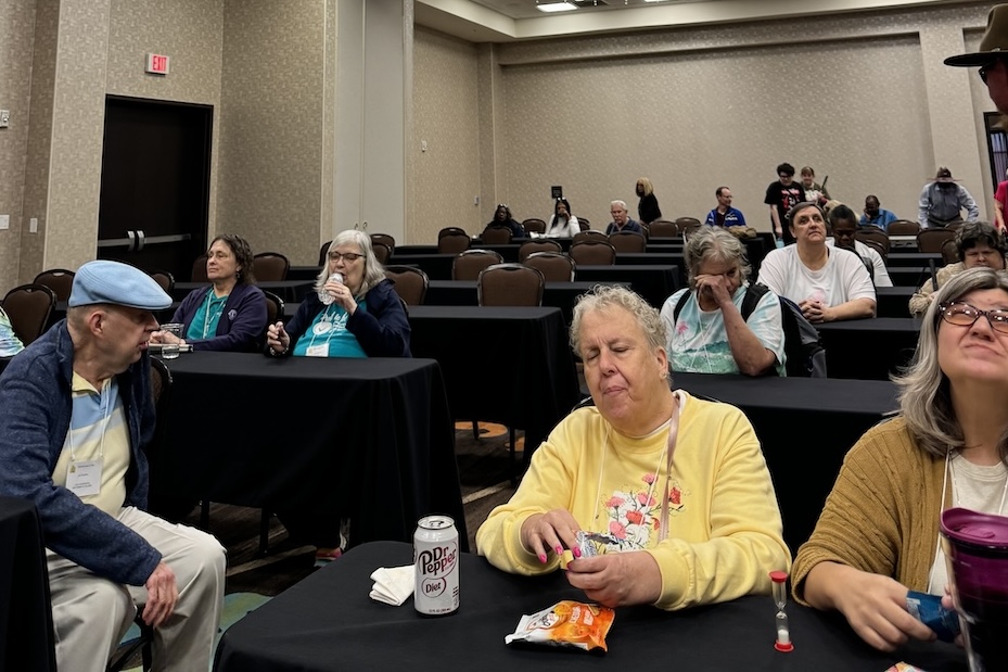 Marilyn Sanders and Vicky Golightly Jennifer Hardin Giving a report on FridayJulie, Elaine, and Jay standing in front of the OCB banner and table.Room full of attendees on Saturday.Friday Night activities.Saturday evening banquet