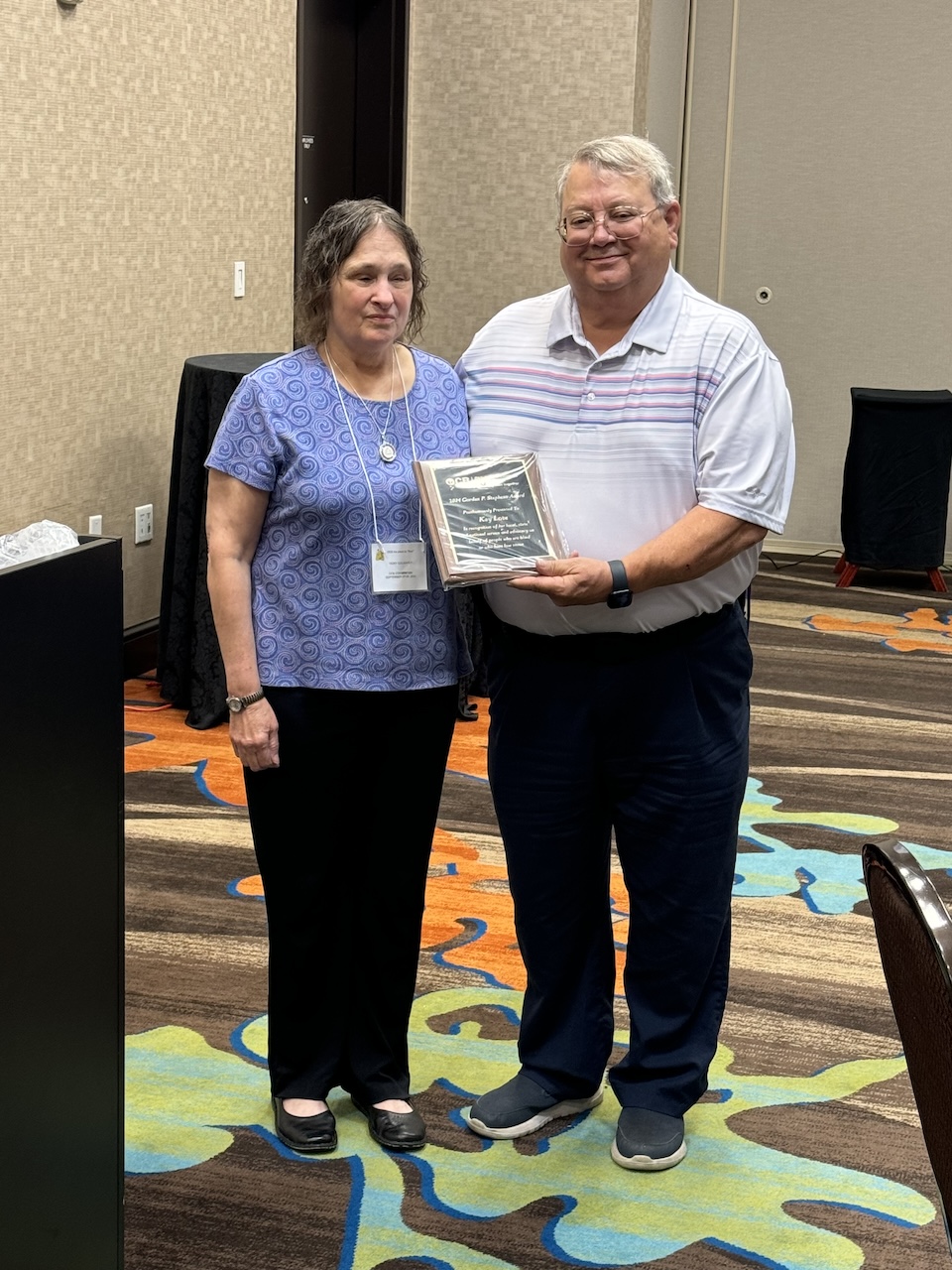 Vicky Golightly presenting the Gordon P. Stephens Award to Tom Love honoring the late Kay Love